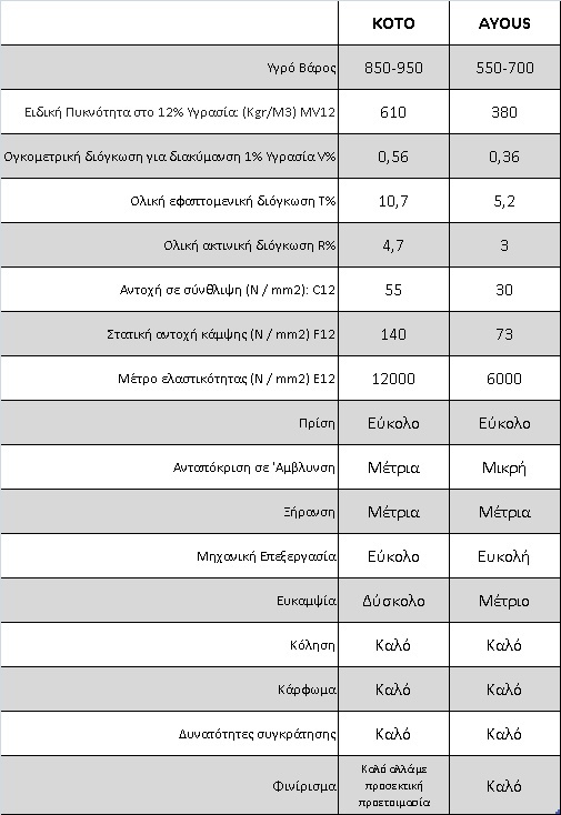Δίνονται στοιχεία του Koto συγκριτικά με το Ayous:
